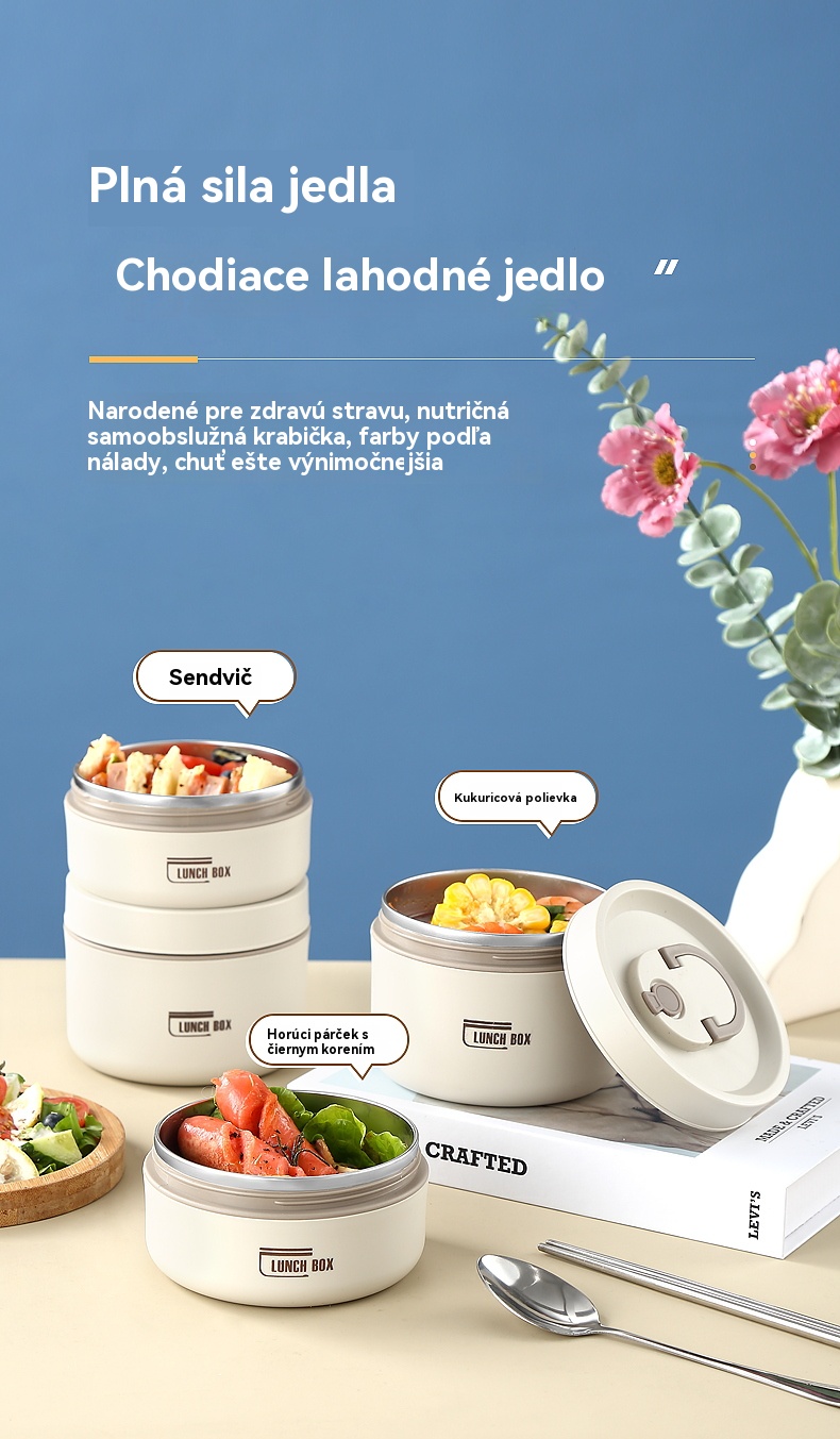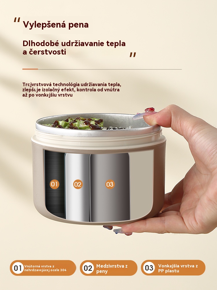 Termoska z nehrdzavejúcej ocele 304, viacvrstvová prenosná desiata, možno vložiť do mikrovlnnej rúry